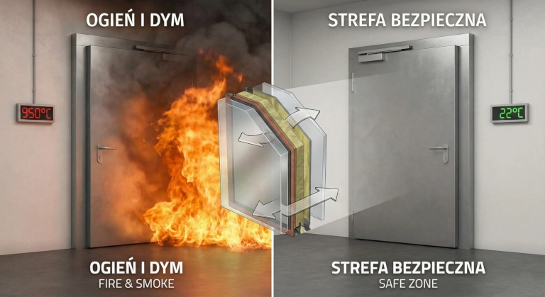 Elementy zapewniające dymoszczelność to przede wszystkim odpowiednie uszczelki pęczniejące i opadające, konstrukcja ościeżnicy oraz właściwy montaż. W praktyce drzwi przeciwpożarowe oznaczane jako EI30Sa lub EI60S200 zapewniają kompleksową ochronę przed ogniem i dymem, co znacznie zwiększa bezpieczeństwo osób podczas ewakuacji.